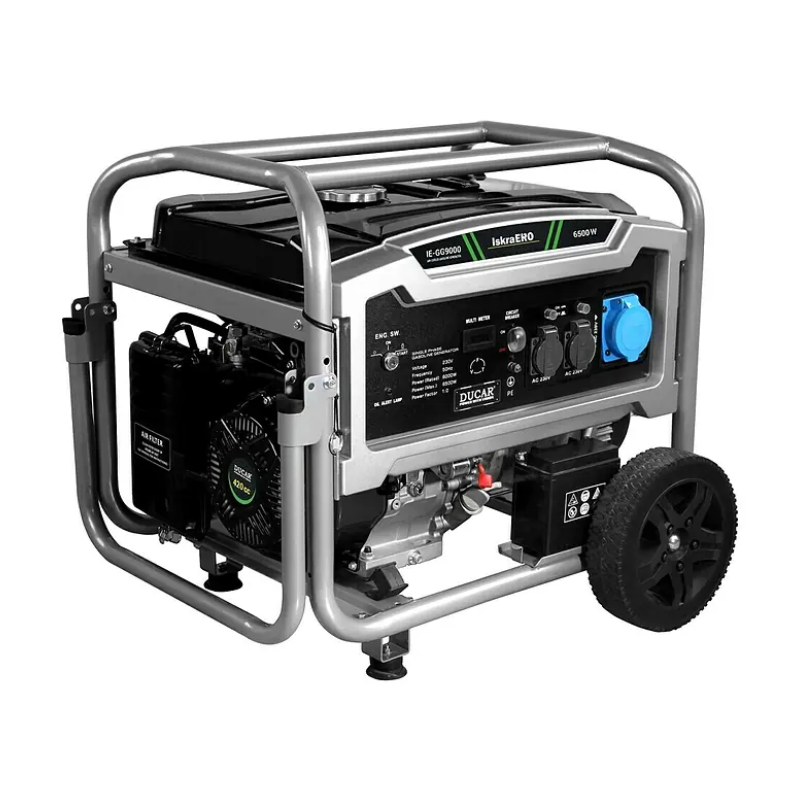 Iskra ERO Generator IE-GG9000 je snažan benzinski generator namijenjen korisnicima koji traže pouzdan i efikasan izvor električne energije u svim uslovima. Opremljen visokokvalitetnim četverotaktnim DH420 motorom zapremine 420 cm³, generator osigurava stabilan rad, dug vijek trajanja i visok nivo pouzdanosti. Zahvaljujući naprednom AVR sistemu automatske regulacije napona, nudi sigurno napajanje osjetljivih uređaja, dok maksimalna snaga do 9 kW i kontinuirana izlazna snaga od 6500 W pokrivaju čak i najzahtjevnije potrebe. Pri opterećenju od 75% omogućava kontinuirani rad do 8 sati, što ga čini odličnim rješenjem za gradilišta, ljetnikovce, događaje na otvorenom ili kao rezervni izvor električne energije u domaćinstvu. Njegova čvrsta konstrukcija, visoka izlazna snaga i jednostavno rukovanje čine ga idealnim izborom za sve situacije gdje je potrebna pouzdana energija bez obzira na uslove.