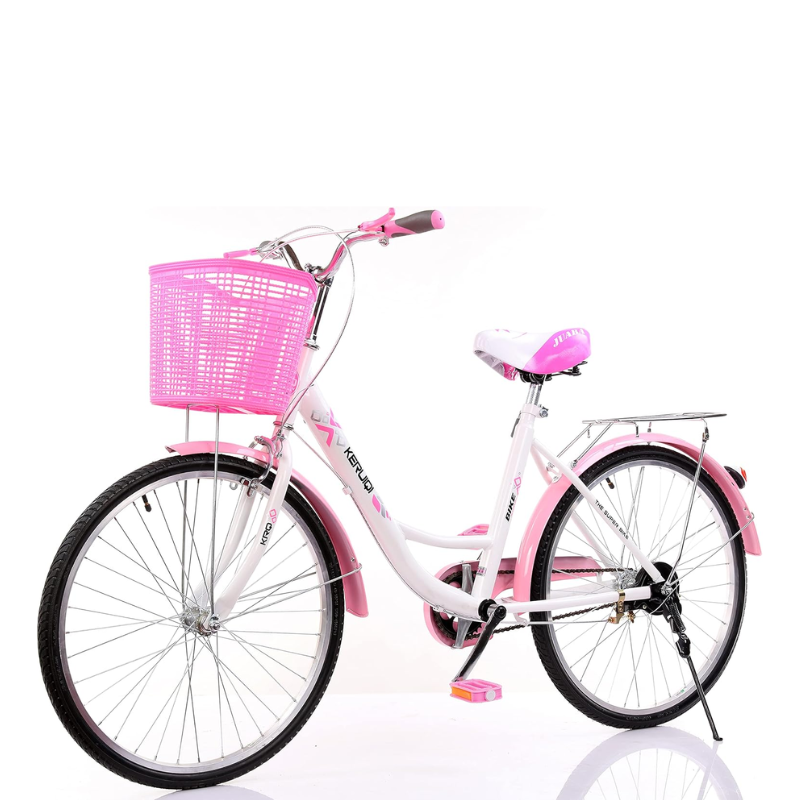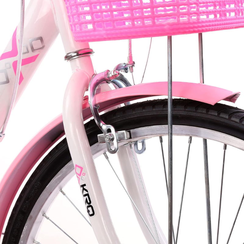 Bicikl je dizajniran u nježnim bijelo-rozim tonovima sa bogatim paketom opreme: