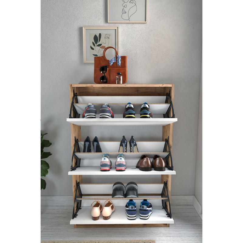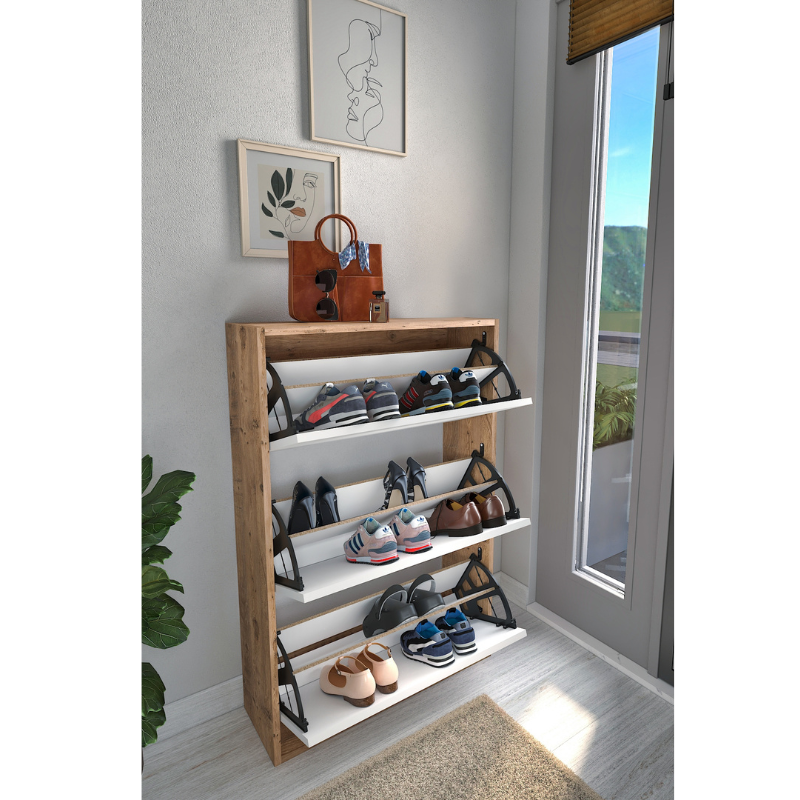 Praktični mehanizam spuštajućeg poklopca:  Posebno dizajniran sistem spuštajućeg poklopca olakšava pristup vašim cipelama, dok vertikalna struktura štedi prostor.