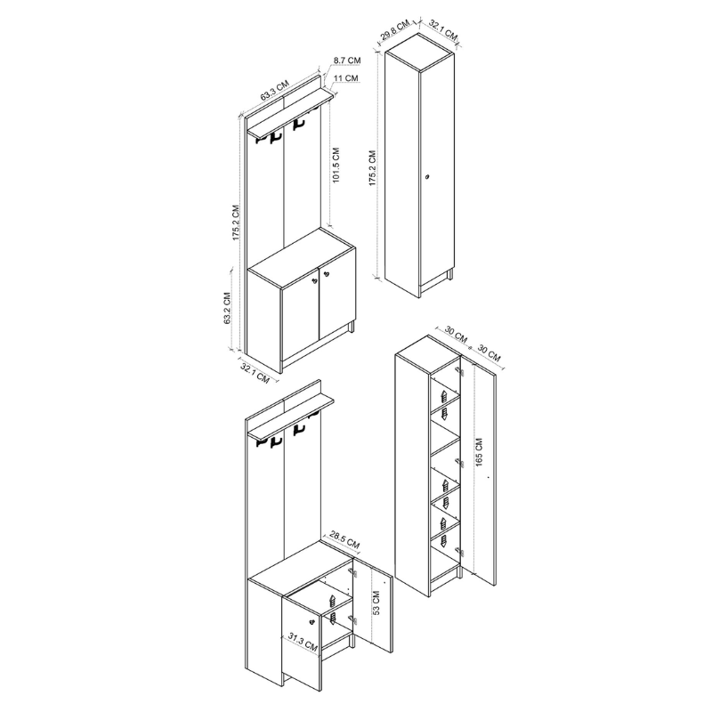 Vješalica za kapute s 3 vrata, vješalica za odjeću, ormar sa 7 pretinaca, vješalica za cipele, sunčani buket