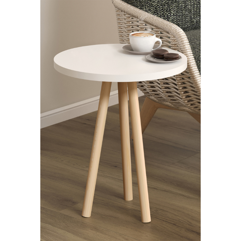 Stolić za kavu se isporučuje rastavljen u svojoj posebnoj kutiji. Noge su napravljene od 100% prirodnog drveta. Zaštitno sredstvo za drvo nanosi se prije upotrebe. Možete ga sigurno koristiti dugi niz godina.
