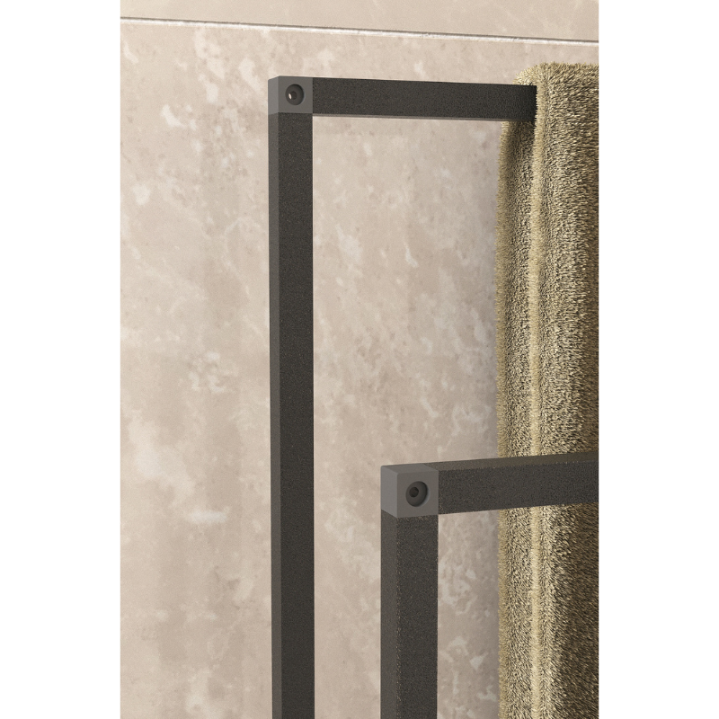 Tijelo našeg metalnog držača za peškire izrađeno je od visokokvalitetnih, izdržljivih profilnih cijevi. Obojen je elektrostatskom bojom u prahu otpornom na hrđu i ogrebotine.
