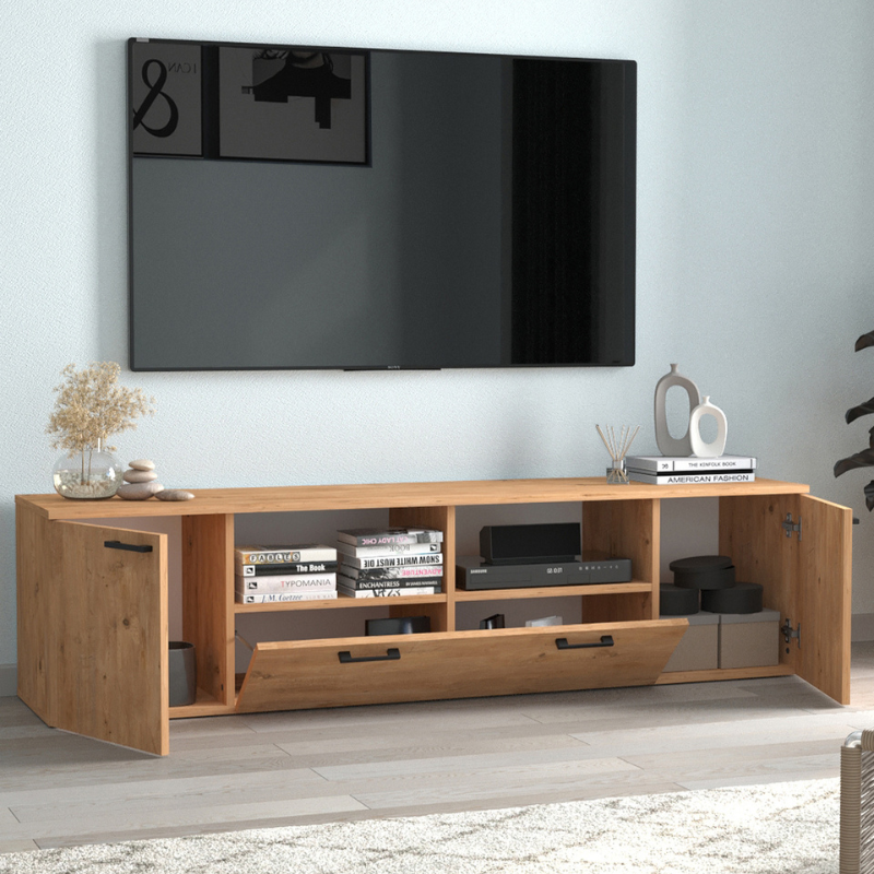 Bofigo Girit TV Komoda u kombinaciji boja bela, antracit i bor savršeno se uklapa u svaki enterijer. Njena moderan dizajn unosi stil i eleganciju u vaš dom.