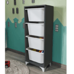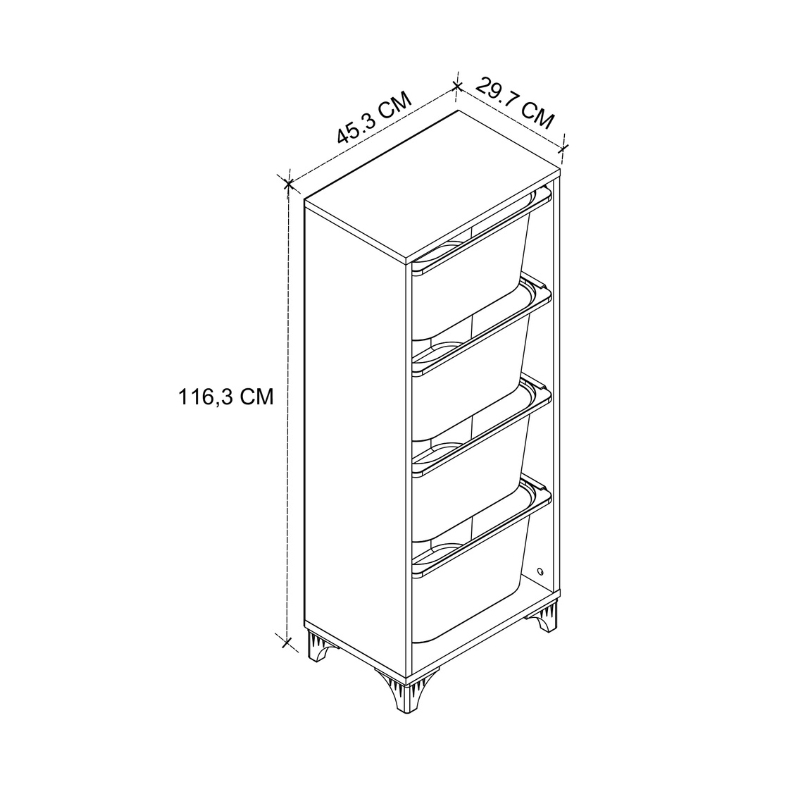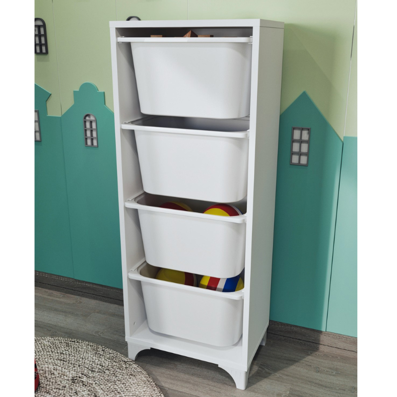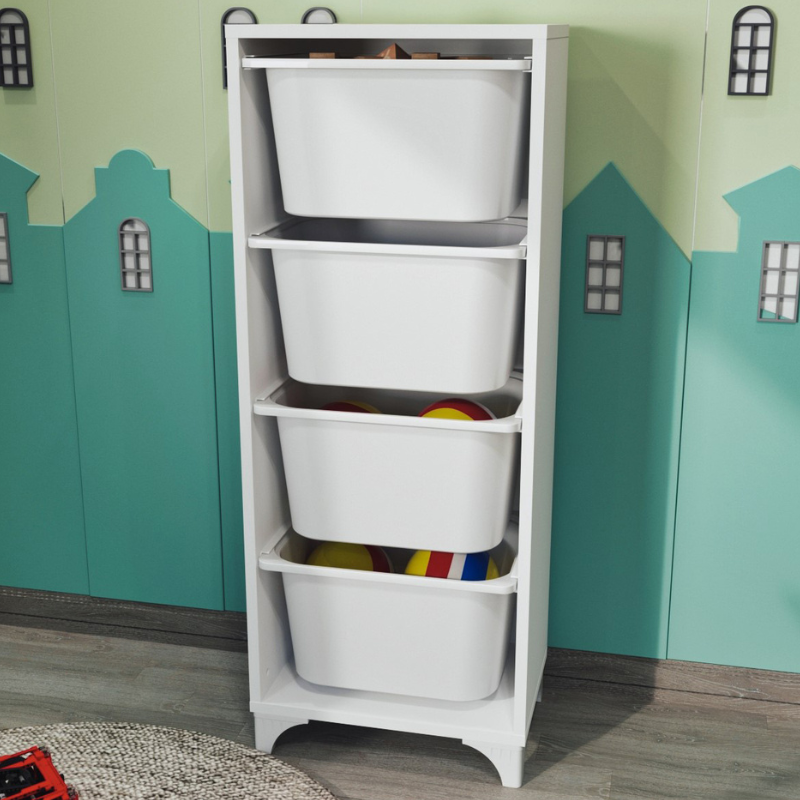 Ormarić za igračke sa 4 korpe, zahvaljujući modernom dizajnu, može se koristiti u kuhinji, dečjoj sobi i mnogim drugim prostorijama vašeg doma.