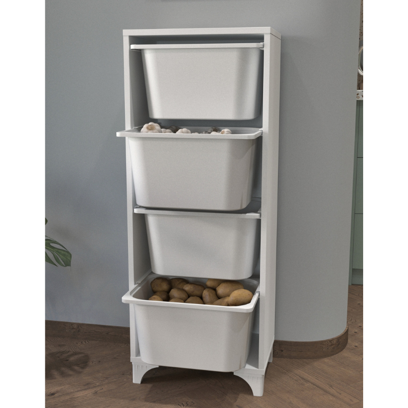 Korpe i klizači ormarića za igračke sa 4 korpe izrađeni su od originalne PP plastike. Pošto može doći u kontakt sa prehrambenim proizvodima, molimo vas da se uverite da proizvodi koje koristite ne sadrže otpadnu ili recikliranu plastiku.