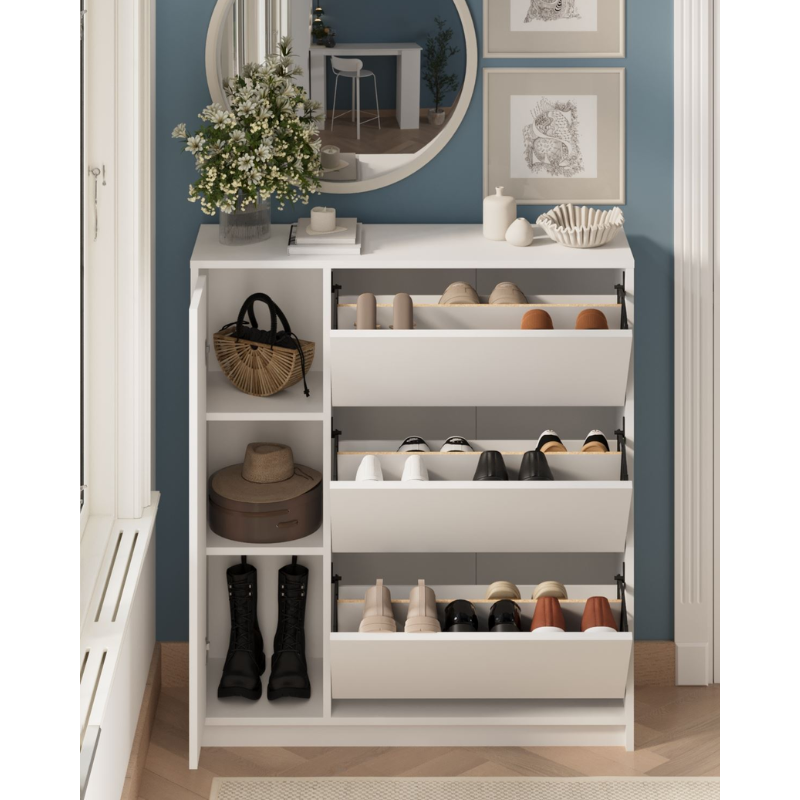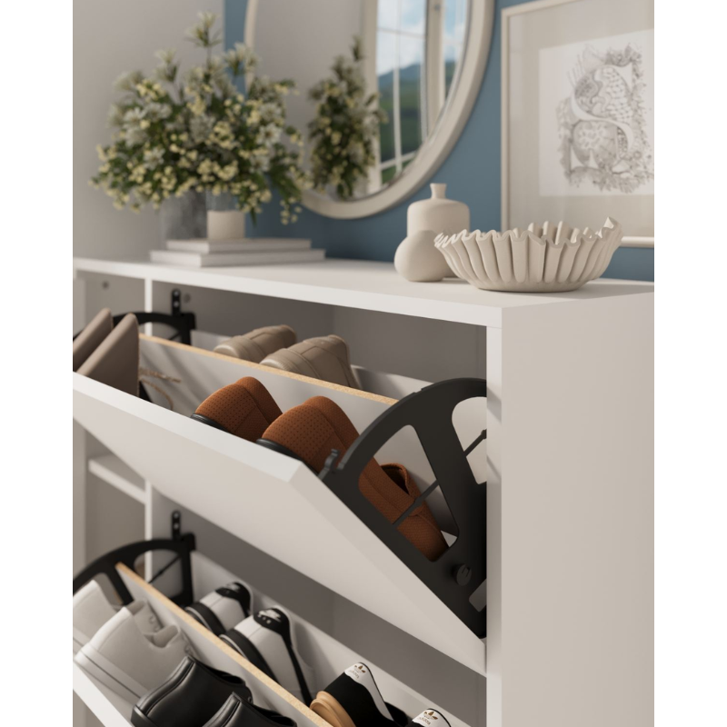 Mehanizam spuštajućih vrata za stalak za cipele: Zahvaljujući ergonomskim vratima koja štede prostor, omogućava udobno korištenje čak i u uskim prostorima i veliki kapacitet za odlaganje cipela.