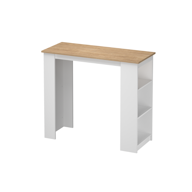 Dizajniran uz stručno znanje u proizvodnji namještaja u ravnim paketima, barski stol Ibiza nudi elegantnu i funkcionalnu upotrebu u kuhinjama, dnevnim boravcima i malim životnim prostorima sa svojim modernim i minimalističkim dizajnom. Uprkos kompaktnim dimenzijama, njegov sistem polica čini ga i dekorativnim i praktičnim.