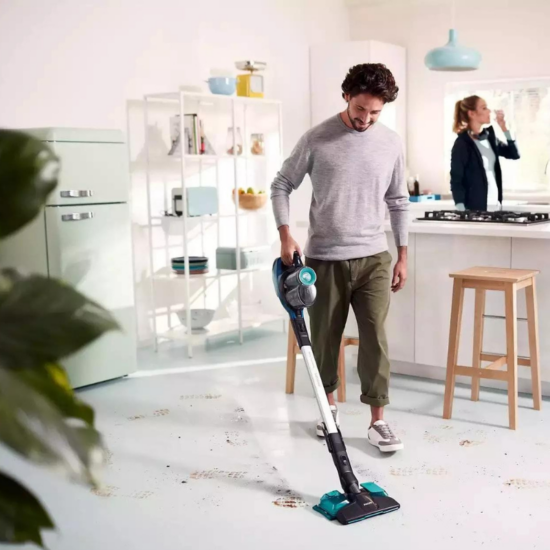 Novi bežični usisavač SpeedPro Aqua pruža brzo čišćenje uz snažno dosezanje čak i najnedostupnijih mjesta. Ima usisni nastavak od 180° za precizno usisavanje prljavštine te jedinstveni sustav za usisavanje i vlažno brisanje.